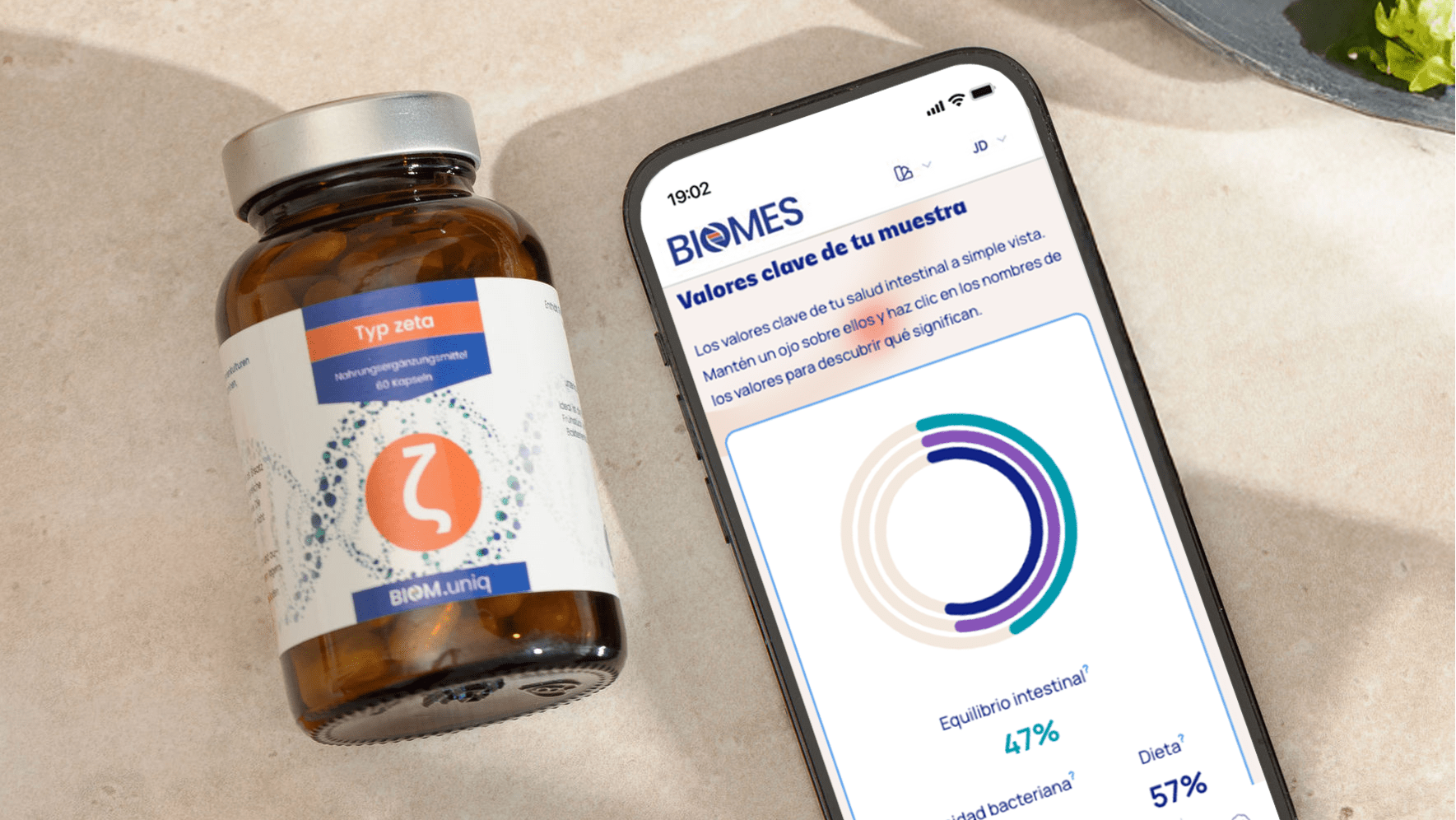 Los complementos alimenticios probióticos «BIOM.uniq» ofrecen 6 tipos diferentes (alfa a zeta), que se recomiendan para diferentes puntos débiles individuales de la flora intestinal. Nuestra recomendación sobre qué tipo le ayudaría se basa en la evaluación de nuestro test intestinal INTEST.pro. Puede solicitarlos en la tienda online de BIOMES a través del enlace que encontrará en su panel de control.